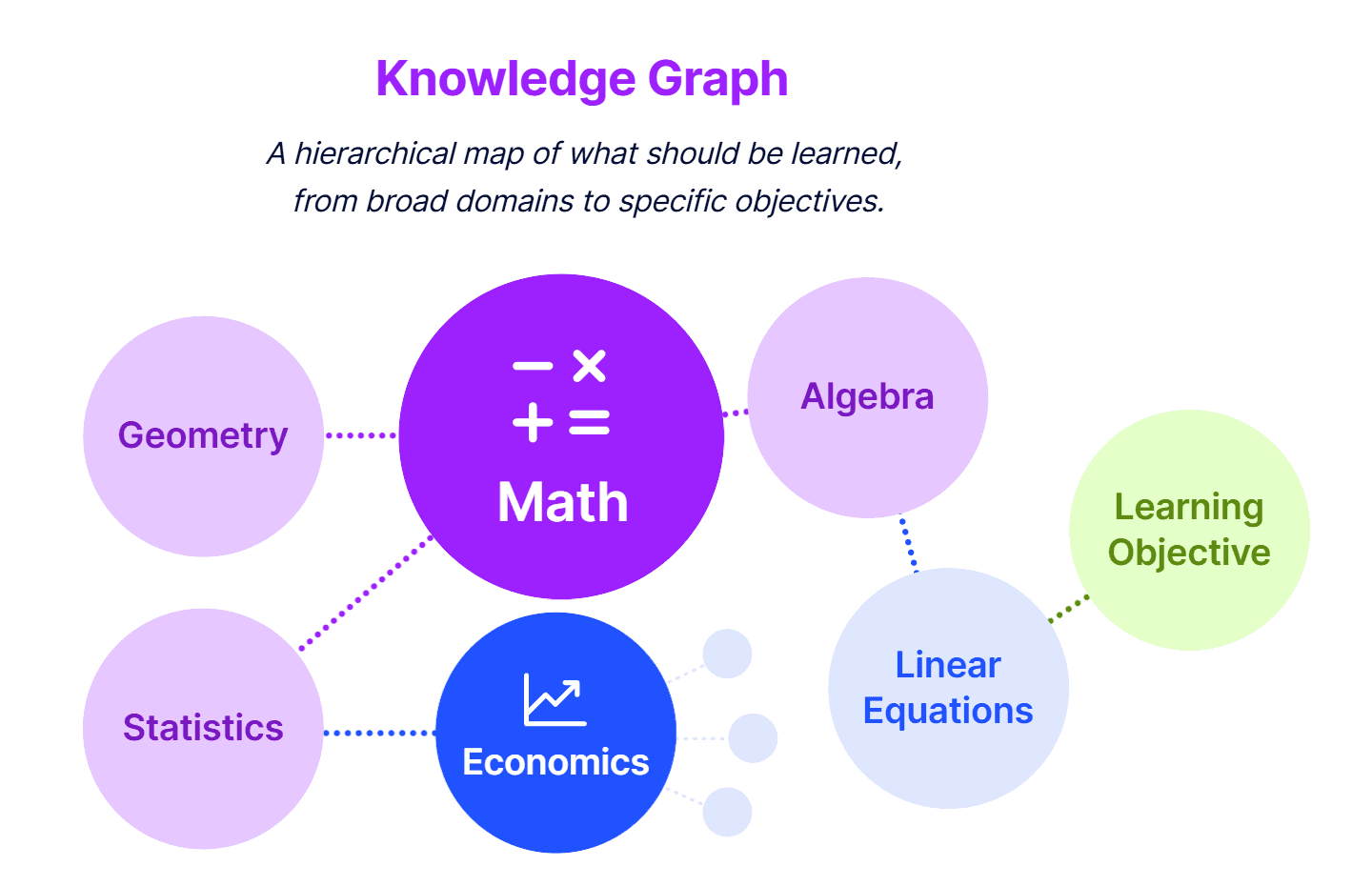 A knowledge graph creates a dynamic map of how a student understands concepts, where they are building confidence, and where understanding has not yet taken hold. Instead of treating learning as a fixed sequence of content to be completed, it models the relationships between concepts, skills, and demonstrated comprehension.